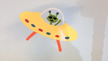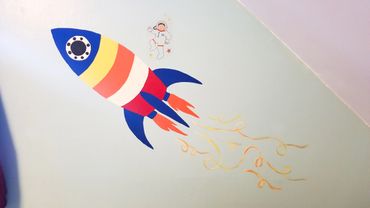 I had the opportunity to paint a mini mural for a space loving kid to enjoy their imagination. Simple touches of a port hole, space ship and alien ship made fun accents in this bedroom. Take a look at the images below to view the Space Mini Mural portfolio.