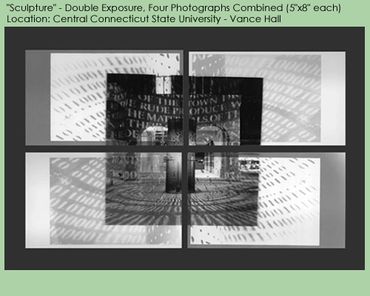 The art of photography has always been fascinating to me. I was lucky to have the opportunity to learn the process through a course at college. I immediately fell in love with it. The class emphasized the use of black and white photography taken with a 35mm camera. We also had the pleasure of learning the development process as well. As I do with all of my art I made it a habit to experiment. My experimentation focused on double negatives. I would take two film negatives exposing one at a time on the same photographic paper. The end result created a collage appearance. Take a look at the images below or click to view the photography portfolio.